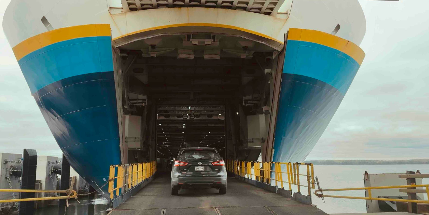 Abfahrt 11.45 Uhr ab North Sydney, vrsl. Fahrtzeit 8 Stunden. Plus die halbe Stunde Zeitunterscheid von Nova Scotia zu Neufundland wären wir also gegen 20.15 Uhr angelandet. Da uns die Meeresgötter aber wohlgesonnen waren, gelang uns die Überfahrt in deutlich kürzerer Zeit – wir legten um 18.00 Uhr Ortszeit an.