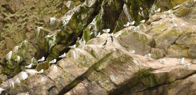 Abfahrt war um 10.35 Uhr – also fast pünktlich. Die Dauer war ca. 90-100 Minuten wie versprochen und das Wichtigste, was wir gelernt haben, war, dass der Name der Bucht „Shitten Rock Cove“ lautet – und wenn ihr die Bilder seht, wisst ihr auch warum!
