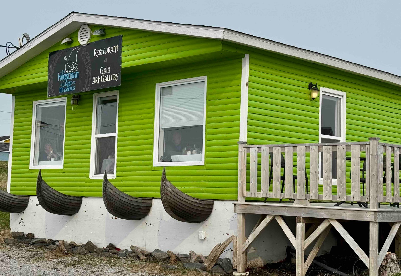 Wir sind nach dem Check-In gleich los Richtung L’anse aux meadows, um einerseits ein Lokal fürs Abendessen aufzutun, andererseits, um uns schon mal einen ersten Überblick über die morgen zu besichtigenden Wikingerreste zu verschaffen.
