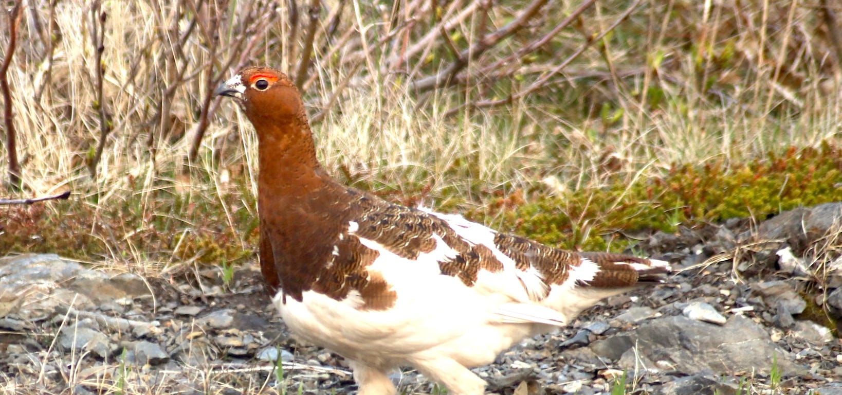 Das Moorschneehuhn am Straßenrand!